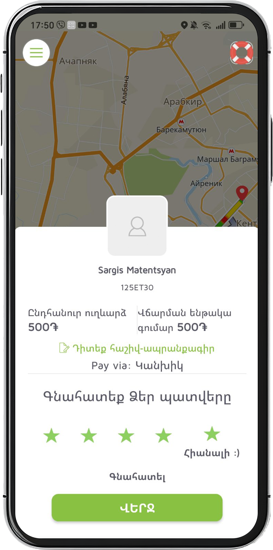 • Վարորդի մոտենալուց հետո Դուք կտեղեկանաք այդ մասին հատուկ հաղորդագորության միջոցով։
