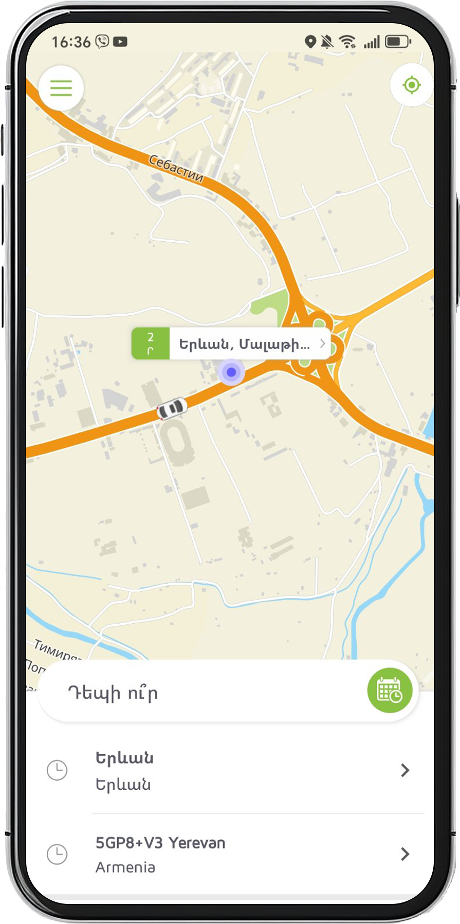 • Ուղևորության ընթացքում կարող եք տեսնել՝ որքան ժամանակ և կիլոմետր է մնացել մինչ ուղևորության ավարտը